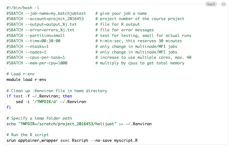 Basic template for R batch job script on Puhti