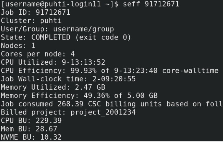 Resource use: seff
